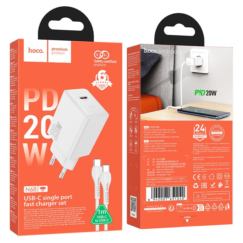 Υλικό: Επιβραδυντικό φλόγας (πλαστικό PC)Έξοδος: USB-C – 20W (υποστηρίζει PD, QC, FCP, AFC)Βύσμα: Ευρωπαϊκού τύπου (EU plug)Διαστάσεις: 84 × 38 × 27 mmΣυνολικό βάρος: 69gΠεριλαμβάνεται: Καλώδιο Type-C σε Type-C, υποστήριξη έως 60W γρήγορης φόρτισης (1 μέτρο)