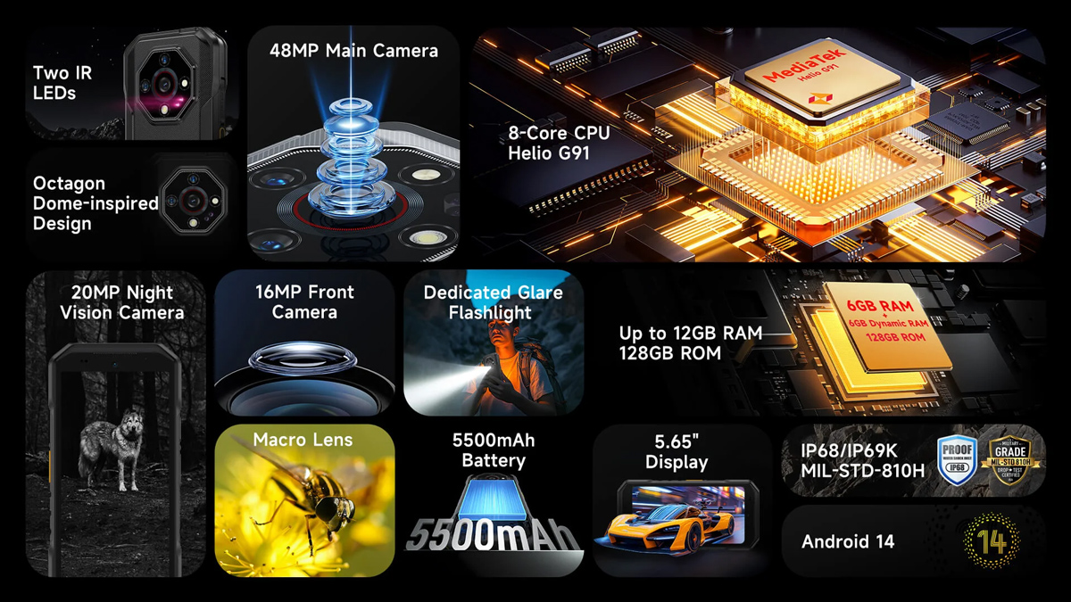 Στιβαρό, εντυπωσιακό και εξαιρετικά αποδοτικό smartphone της ULEFONE, με πιστοποίηση IP68/IP69K/MIL-STD-810H για να αντέχει σε νερό, σκόνη, πτώσεις και ακραίες καιρικές συνθήκες.
